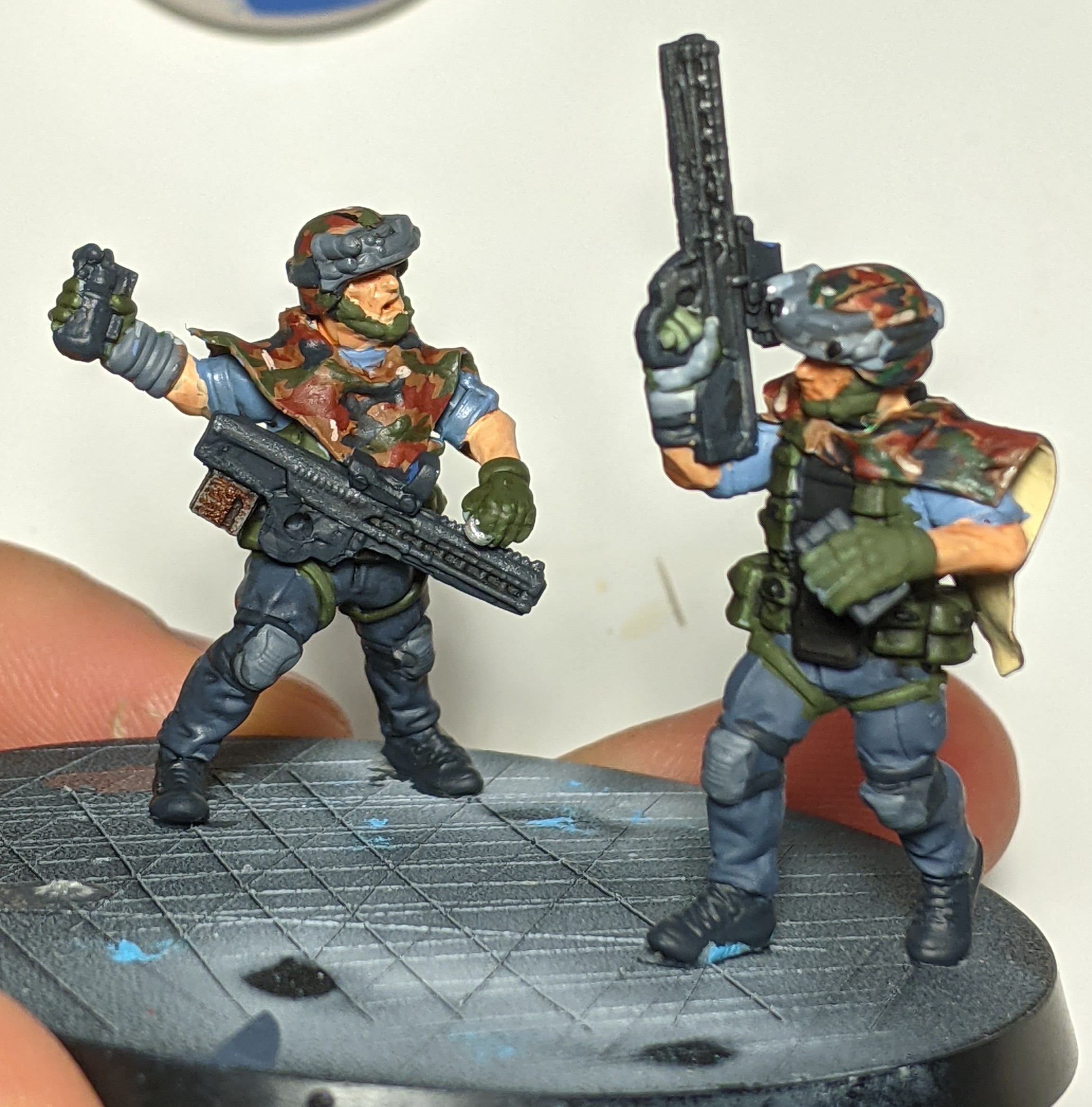 A pair of Infantry with their standard weaponry and camo smocks. I may consider adding hoods and a bit more complexity to futurer iterations.